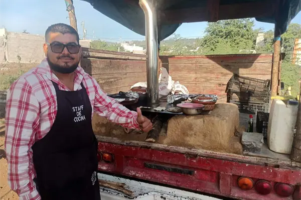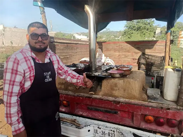 - Él cuenta que trabajó durante 20 años como trailero, recorriendo distintas regiones de la República Mexicana, hasta que decidió poner en marcha su propio negocio y traer a Mazatlán un concepto que no existe en ningún otro punto de la ciudad, tacos suaves y chorreadas elaborados en una hornilla de barro montada directamente en su camioneta.