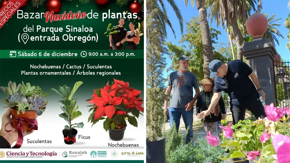 El Parque Sinaloa, en la ciudad de Los Mochis, invita a la ciudadanía a participar en su último bazar de plantas del 2025, el cual se llevará a cabo este sábado 6 de diciembre, de 9:00 de la mañana a 3:00 de la tarde, por la entrada ubicada en Álvaro Obregón.