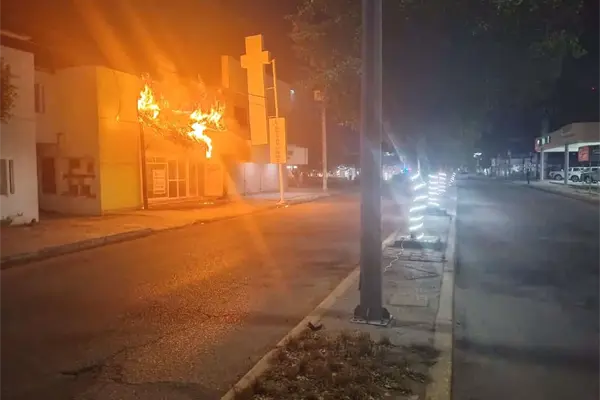 Al llegar al lugar, encontraron el local comercial ardiendo en llamas, principalmente la parte de la palapa. Luego de acercarse, confirmaron que se trataba de un local comercial que estaba en renta.