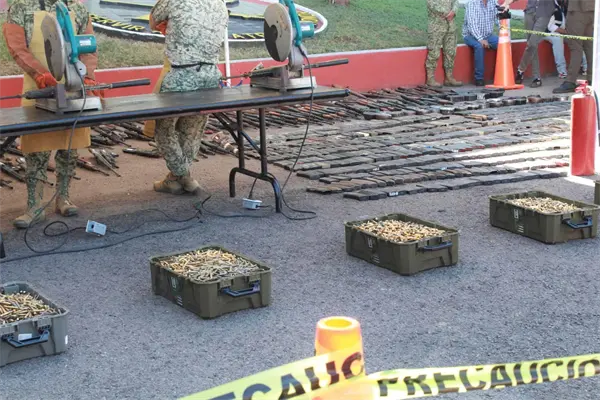 Destruyen lanzagranadas, Cuernos de Chivo, y más de 900 rifles y pistolas decomisadas, en Culiacán