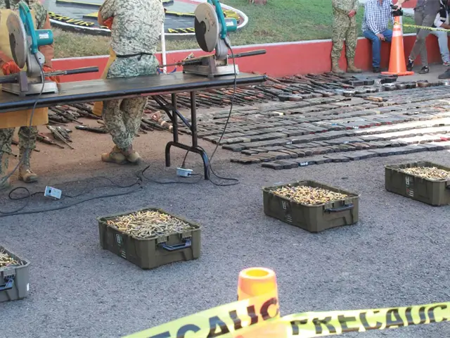 El gobernador del estado, Rubén Rocha Moya, presidió la ceremonia de destrucción de armas en la Novena Zona Militar en Culiacán, Sinaloa este 15 de diciembre de 2025.