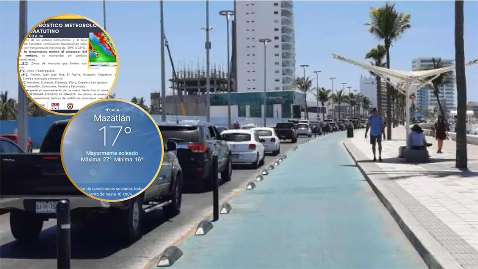Este jueves 18 de diciembre, Mazatlán registrará condiciones climáticas estables y cielo despejado, con temperatura mininas de 16 grados centígrados por la mañana y hasta 27 grados centígrados por la tarde, esto de acuerdo con el pronóstico emitido por Protección Civil de Sinaloa.