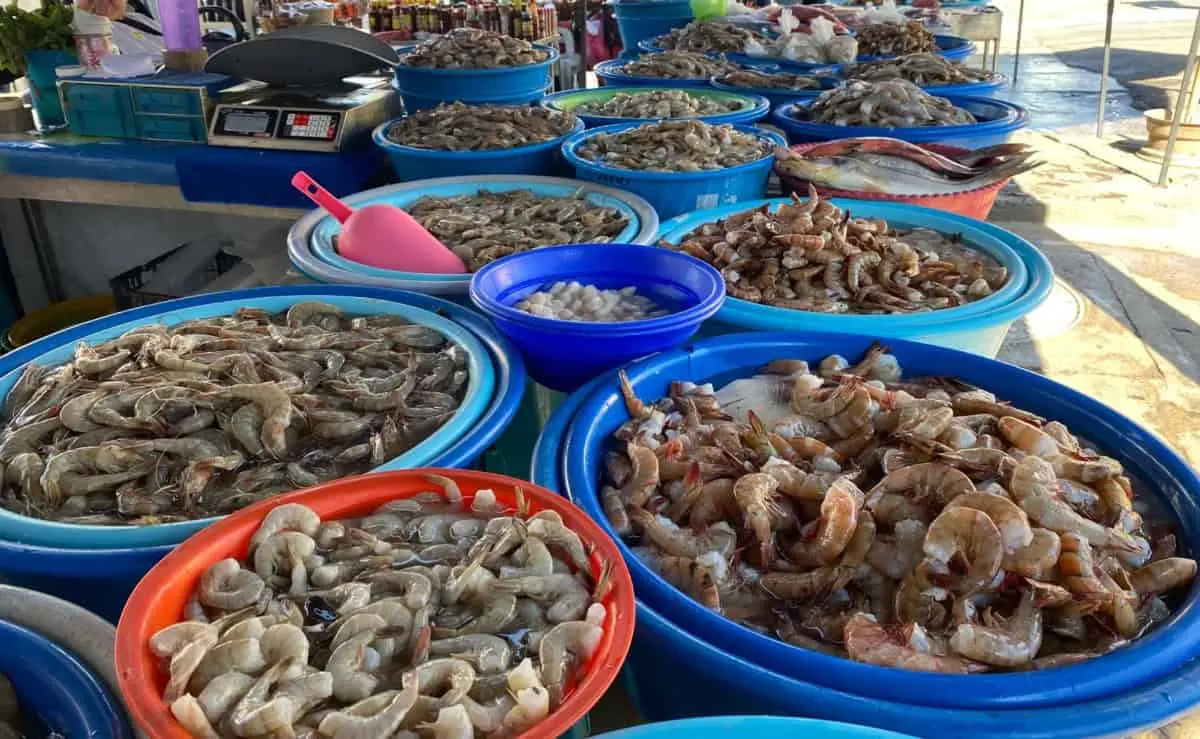 También se encuentra camarón de mar en $200 pesos el kilo, camarón de estero en $160 pesos, así como camarón ya pelado con precios que van de $140 a $200 pesos el kilo.