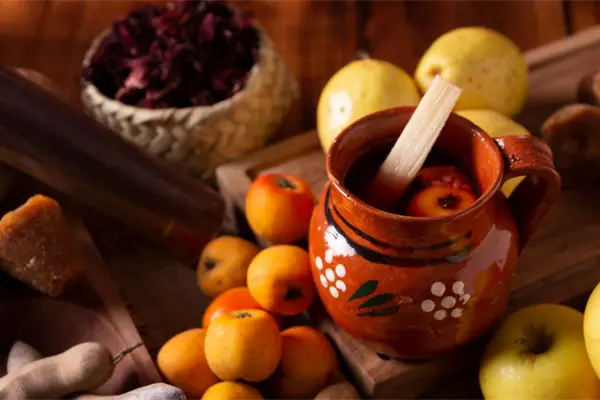 El ponche navideño tradicional mexicano es una bebida caliente que se prepara con frutas como tejocote, guayaba, manzana, caña de azúcar, tamarindo y ciruela pasa, endulzada con piloncillo y especiada con canela.