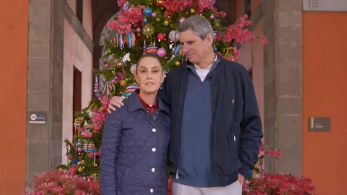 La Presidenta de México estuvo acompañada de su esposo y desearon Feliz Navidad.