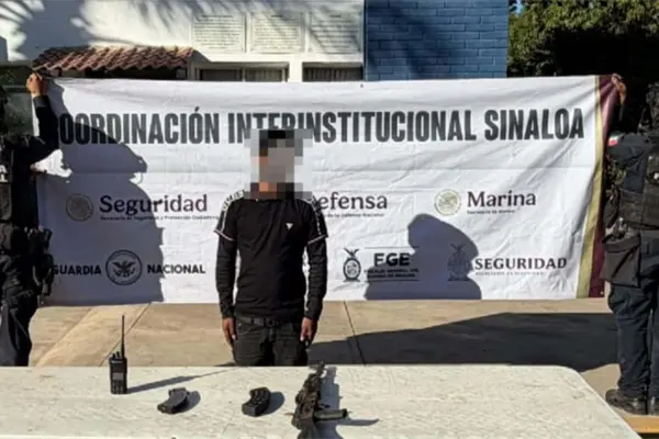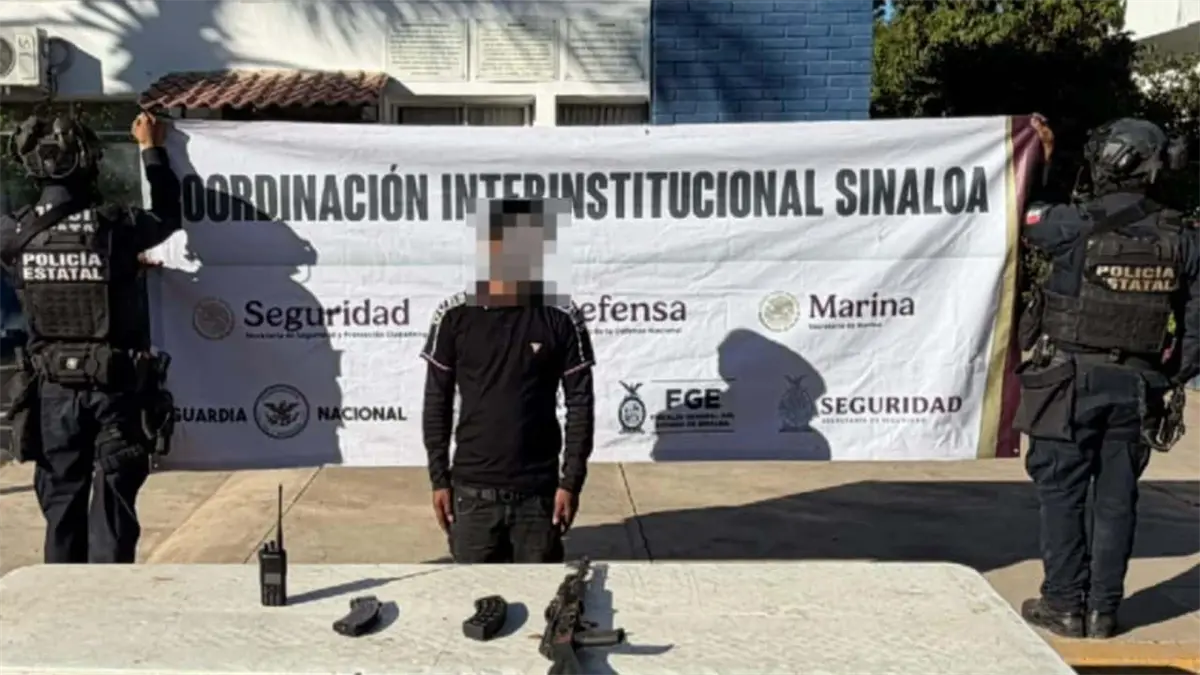 Las autoridades indicaron que personal de la Secretaría de Seguridad Pública del Estado, a través de la Policía Estatal Preventiva, en coordinación con el Ejército Mexicano, la Guardia Nacional, la Secretaría de Marina, la Fiscalía General de la República, la Secretaría de Seguridad y Protección Ciudadana y la Fiscalía General del Estado, detuvieron a un civil armado en Navolato.