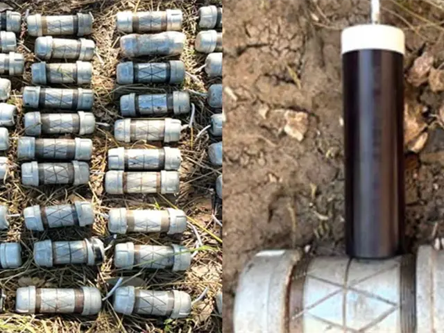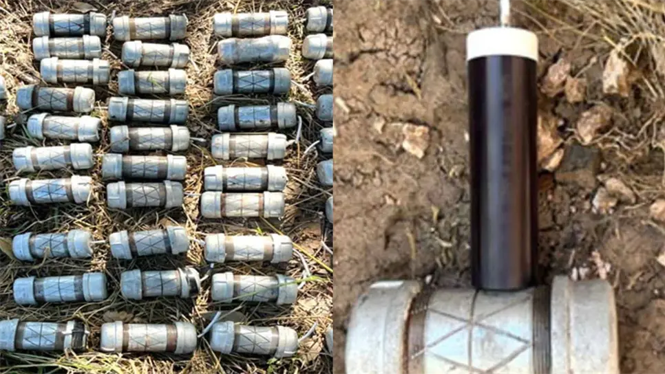 Elementos del Ejército Mexicano aseguraron y destruyeron 46 artefactos explosivos improvisados de fabricación artesanal por un camino de terraceria en la sierra del municipio de Badiraguato, Sinaloa.