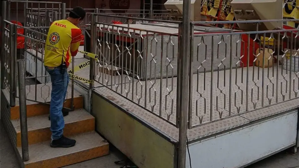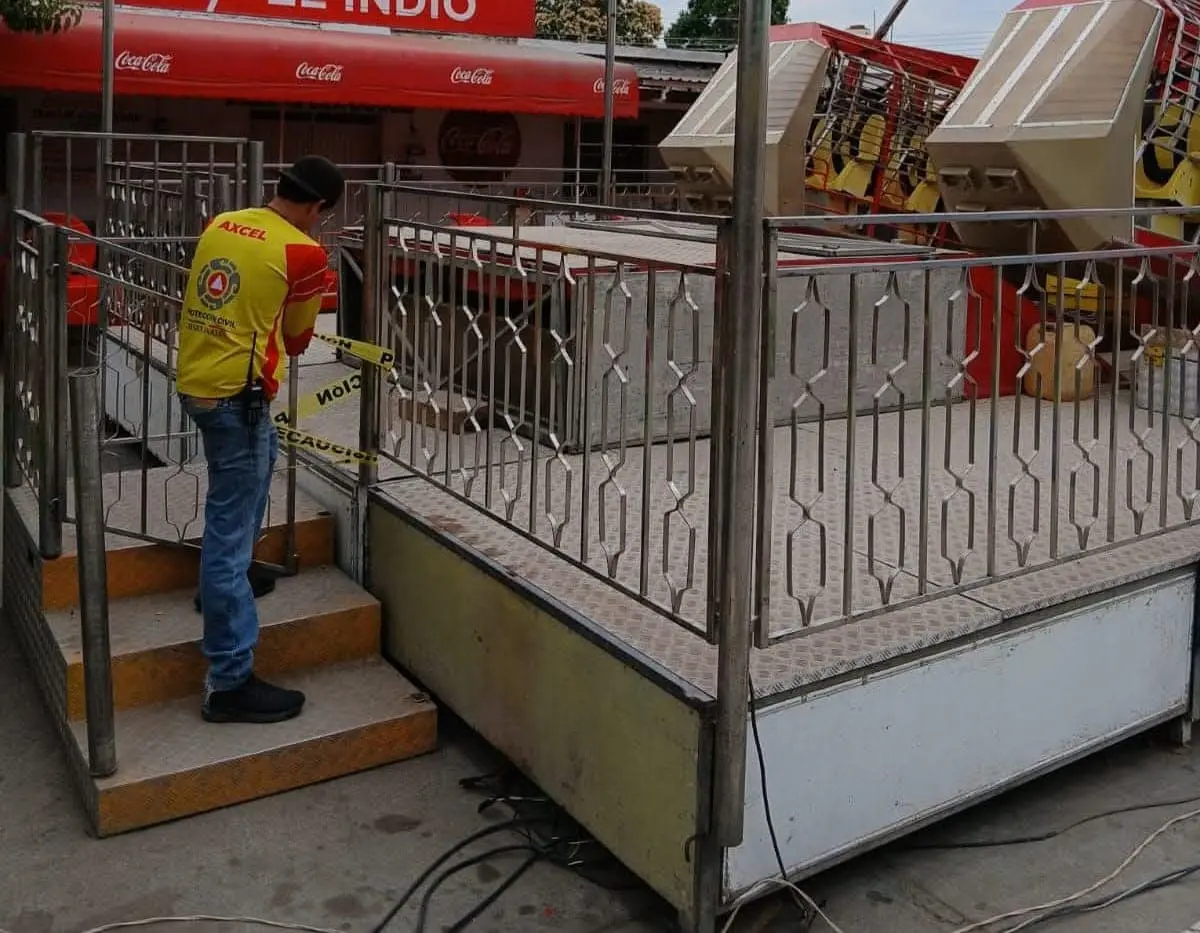 De acuerdo con la información proporcionada por la dependencia, una de las puertas de seguridad del juego mecánico se desprendió mientras el aparato se encontraba en funcionamiento, lo que motivó una revisión inmediata por parte del personal de Protección Civil.
