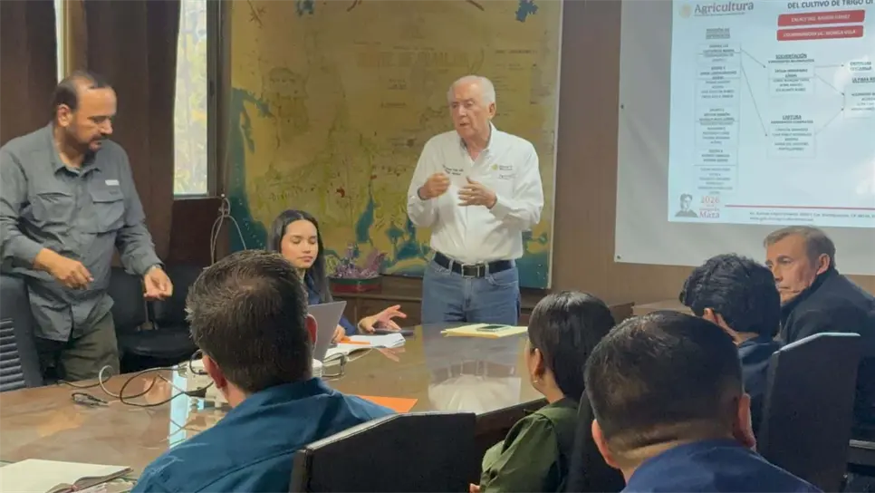 Durante una reunión entre productores de trigo y empresas de acopio del norte de Sinaloa con autoridades de la Secretaría de Agricultura y Desarrollo Rural (SADER), encabezadas por el delegado estatal Jesús Vega Acuña, se acordó fortalecer la coordinación para agilizar la revisión de expedientes y avanzar en el pago del complemento al precio de garantía que aún está pendiente.