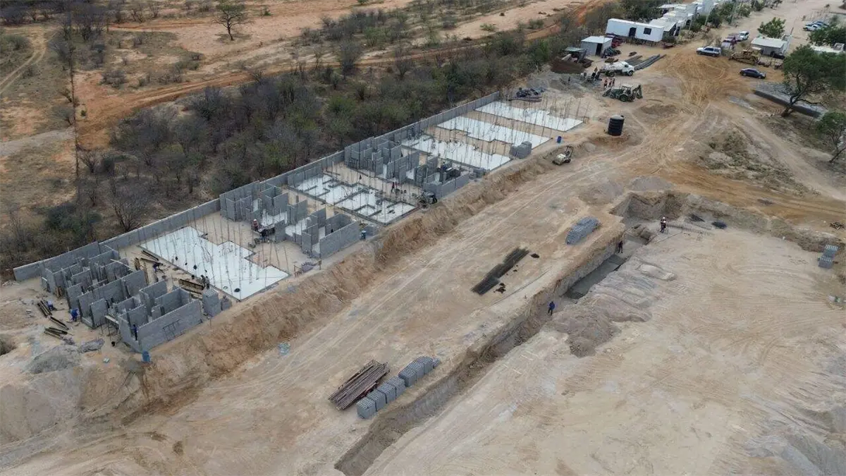 De acuerdo con las imágenes del sitio, ya se encuentran levantadas varias estructuras, con trabajos visibles en cimentación, muros y distribución de espacios, lo que confirma que el proyecto avanza conforme a lo programado.