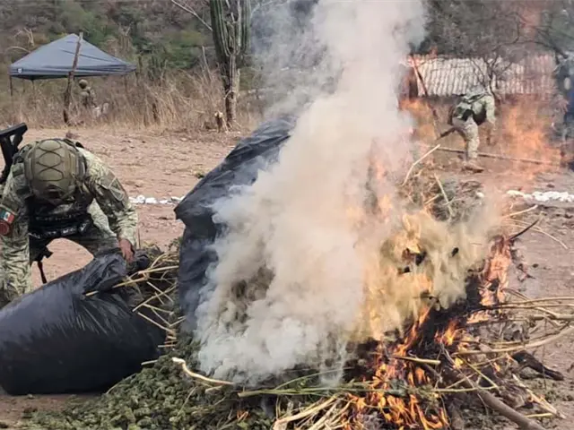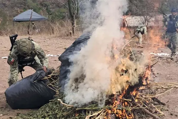 Después de que los elementos del Ejército Mexicano aseguraron el área, procedieron a arrancar desde la raíz e incinerar todas las plantas sembradas; además, también quemaron el cannabis que ya estaba listo para su venta y consumo.