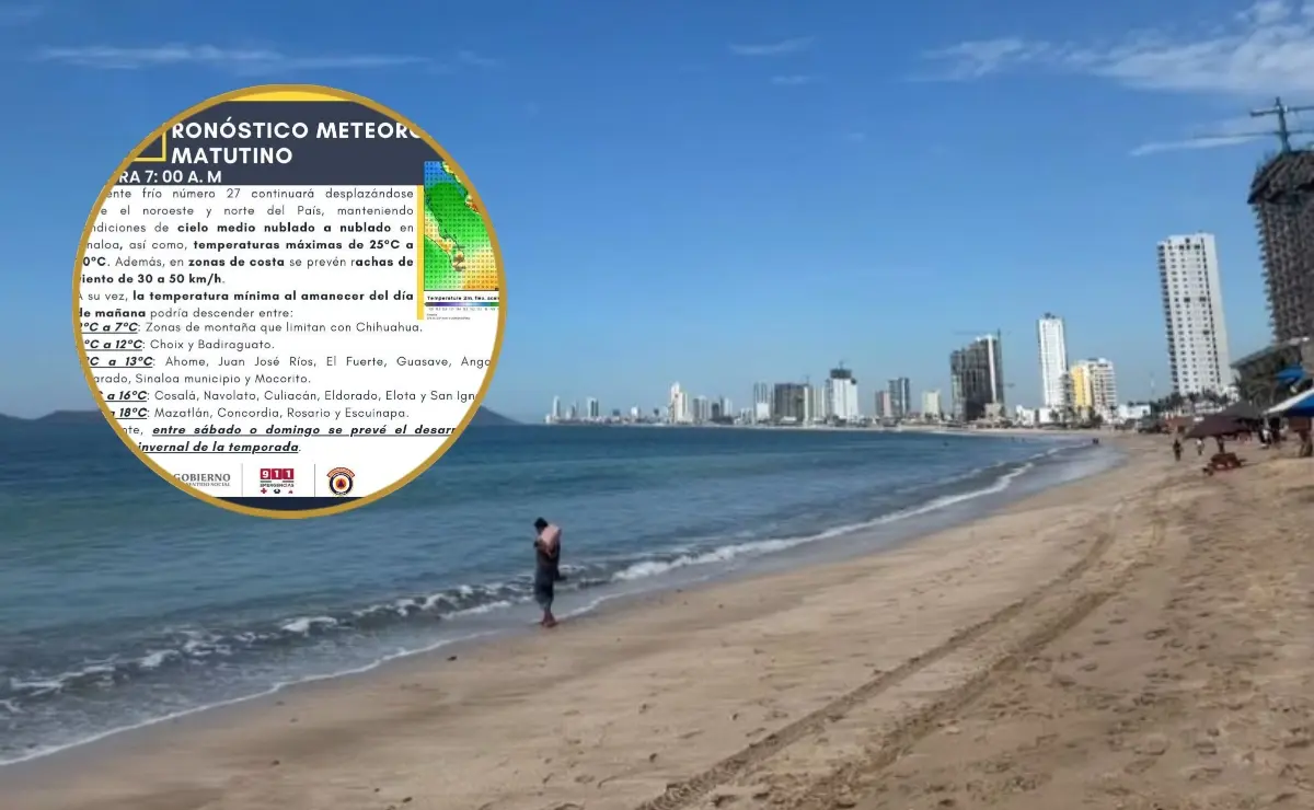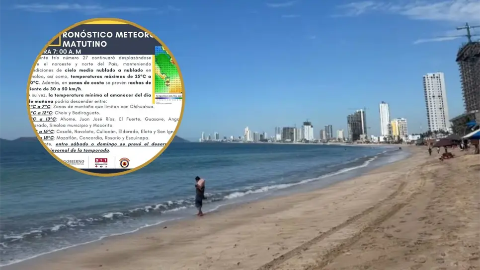 Será a partir de este viernes 9 de enero cuando las temperaturas mínimas comiencen a descender gradualmente en Sinaloa, debido al Frente Frío número 27, que continúa desplazándose sobre el noroeste y norte del país, manteniendo condiciones de cielo medio nublado a nublado en la entidad.