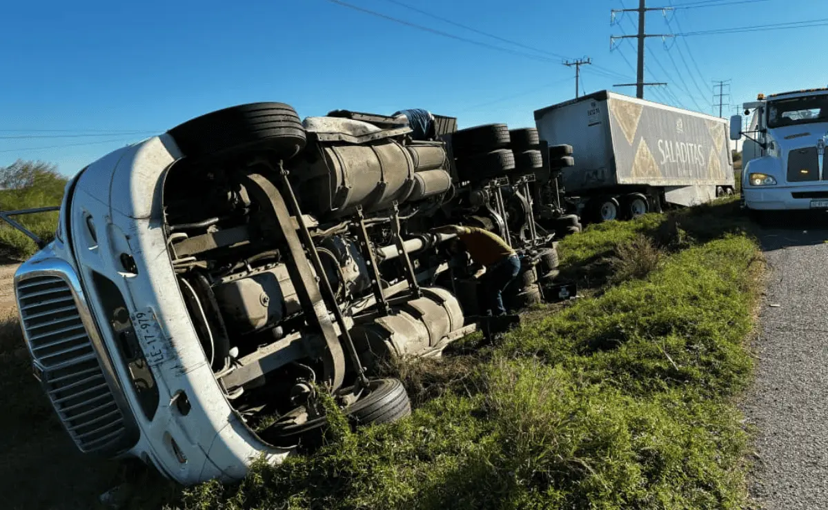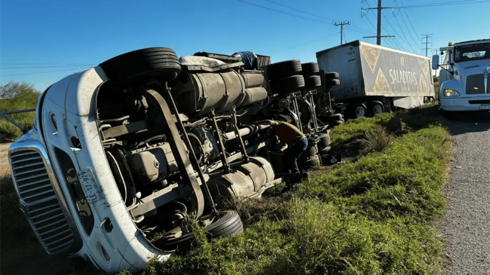 Vuelca tráiler sobre la México 15 en los límites de Juan José Ríos y Ahome; Chofer resulta ileso