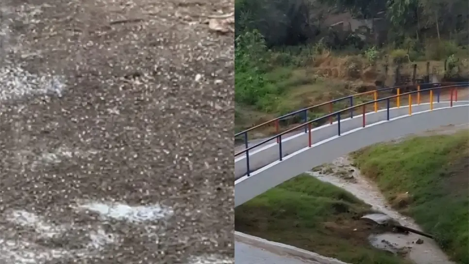 Vecinos de comunidades como Guadalupe y zonas cercanas reportaron una intensa caída de granizo que dejó los suelos cubiertos de pequeños pedazos de hielo, mientras que en localidades como Agua Caliente de Baca se registraron fuertes precipitaciones pluviales, según testimonios de pobladores.