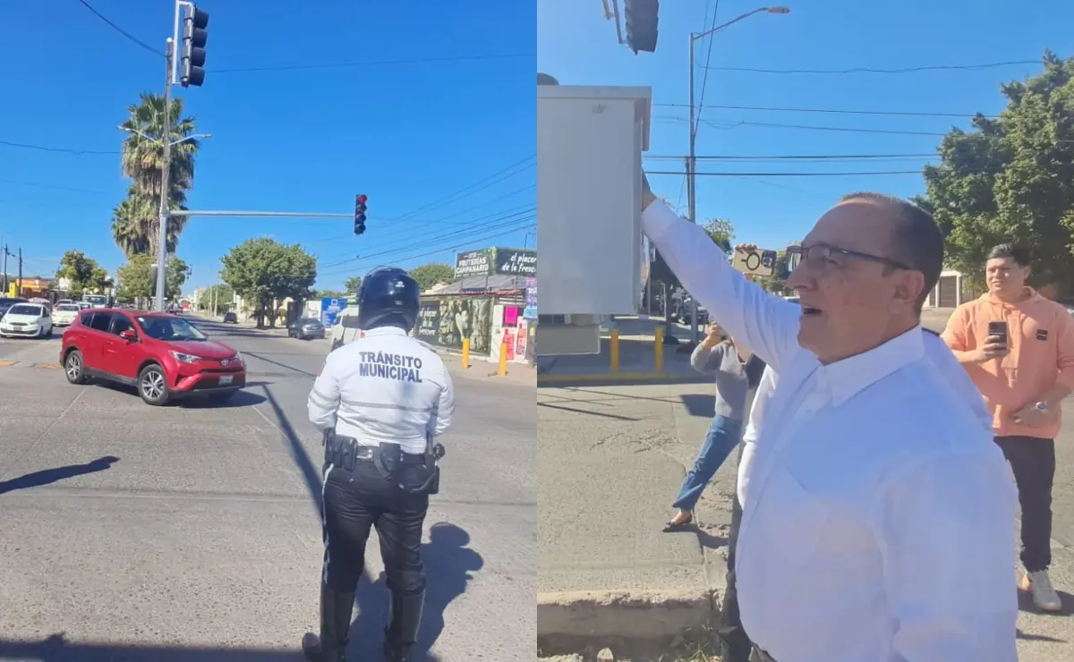 Antonio Menéndez pone en funcionamiento nuevos semáforos en Los Mochis