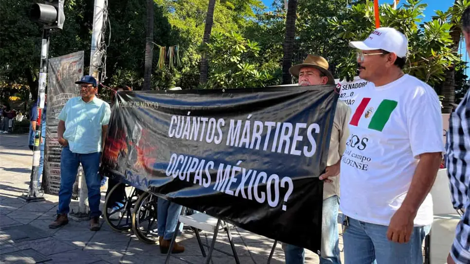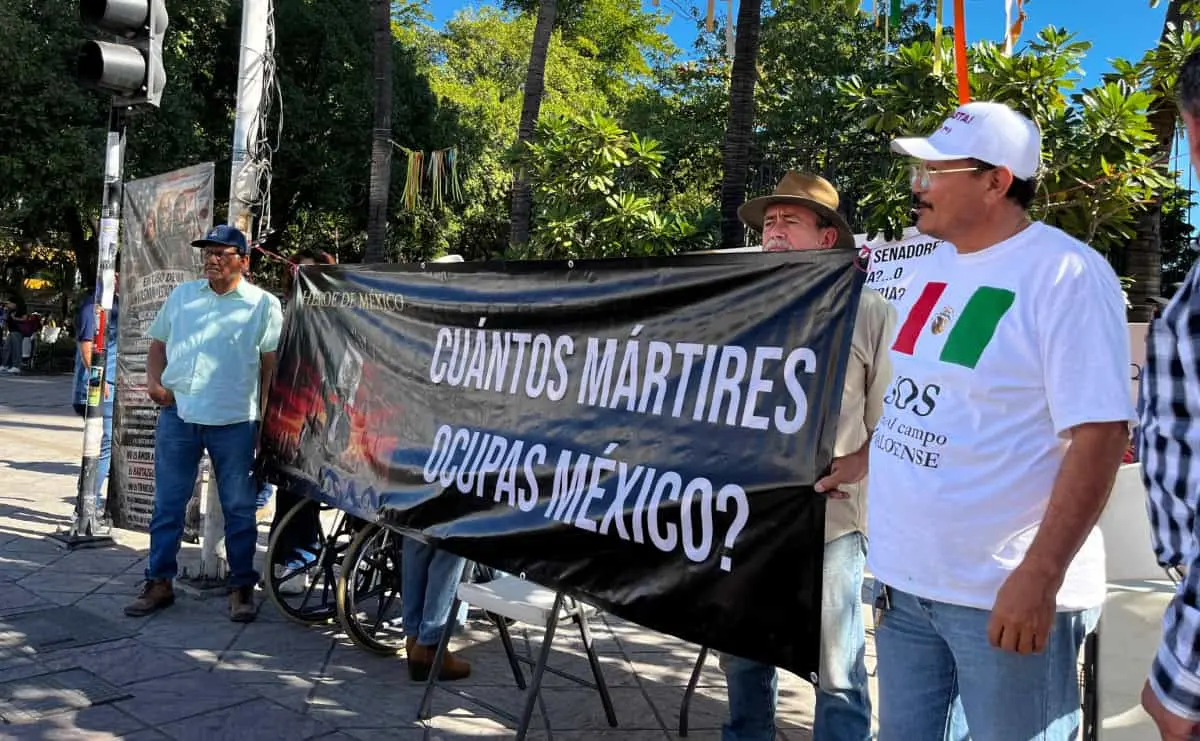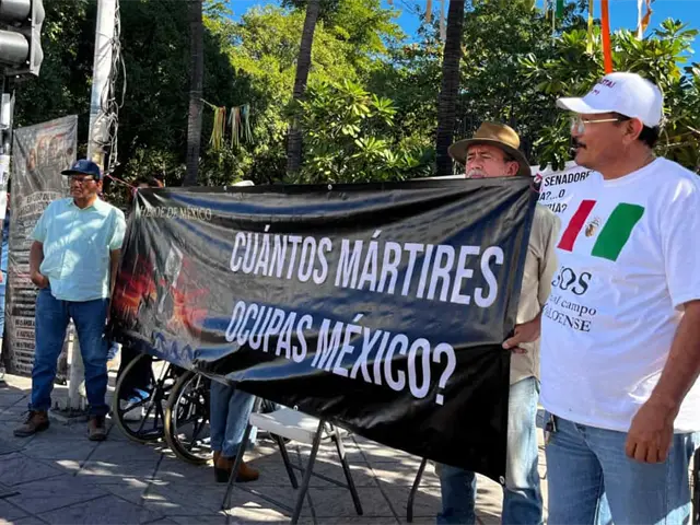 Agricultores sinaloenses se manifiestan la mañana de este jueves 15 de enero frente a la Catedral de Culiacán para exigir respuestas a sus solicitudes, mientras 60 líderes nacionales negocian precios justos para sus cosechas.