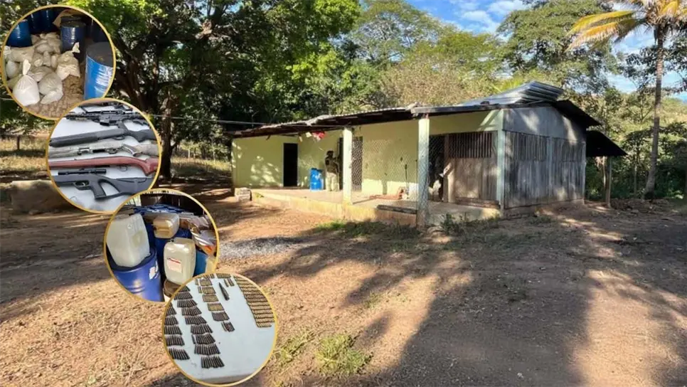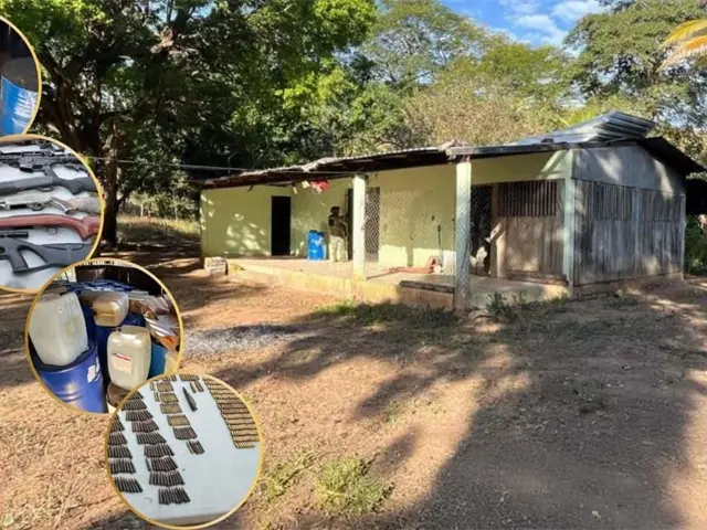 Los aseguramientos se realizaron durante un recorrido terrestre por la zona rural de Petatlán, en donde localizaron una bodega con aproximadamente 24 mil 920 litros y 12 mil 200 kilogramos de sustancias químicas; posteriormente, se ubicó y desmanteló un campamento clandestino donde se encontraron vehículos, así como armamento, municiones, ropa, calzado táctico y material diverso.