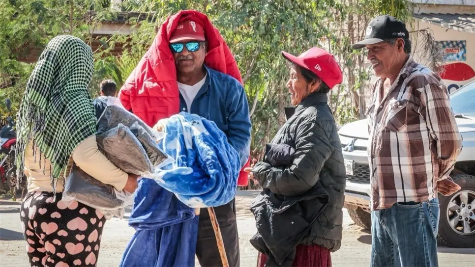 Durante la jornada, personal operativo de la dependencia entregó cobijas y chamarras, apoyos que representan un alivio inmediato ante el frío y contribuyen a la protección de la salud, especialmente de niñas, niños, y personas adultas mayores.