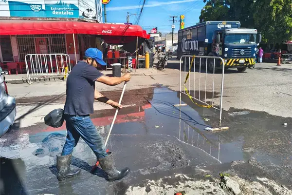 - Acusan que esto se puede convertir incluso en un problema de salud, pues justo junto a la fuga operan varios negocios de comida, desde taquerías hasta cremerías, pollerías y fruterías, que conviven diariamente con el agua contaminada.